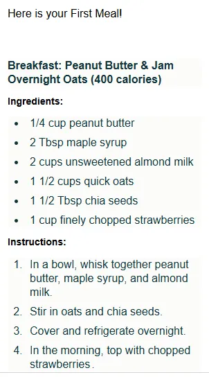 Answer: Your meal plan will be e-mailed to you, including recipe's and instructions on preparation
